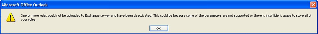 An user was getting this popup message every time he tried add or modify an Outlook rule. ![]()
