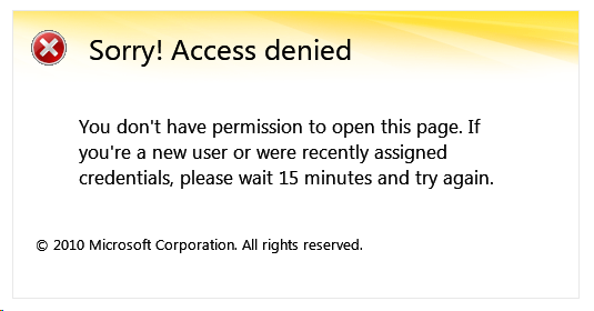 You don’t have permission to open this page. If you’re a new user or were recently assigned credentials, please wait 15 minutes and try again.)