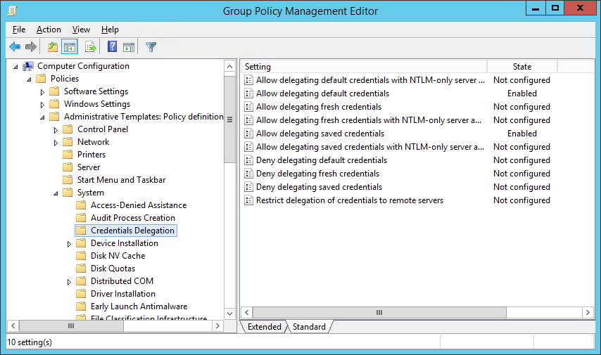 1. Go to Computer Configuration ==> Policies ==> Administrative Templates ==> System ==> Credentials Delegation