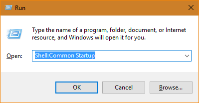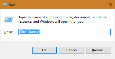 - Type Shell:Common Startup Shell:Startup and press Enter