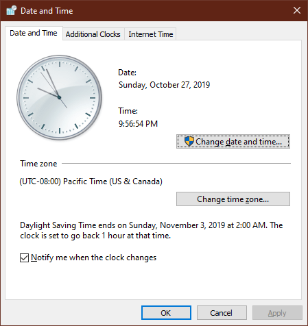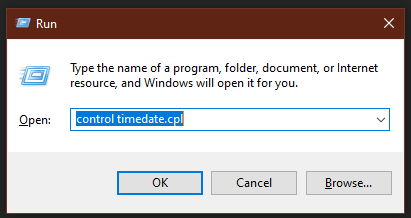 - Type “control timedate.cpl“