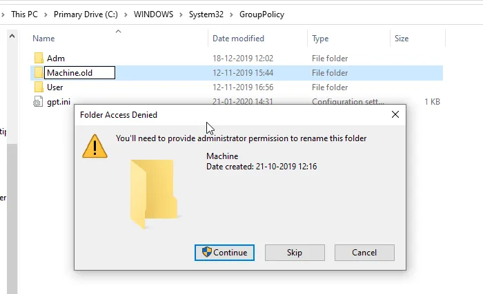 This super easy fix might fix the issue. All you have to do is rename (or delete) the folder named Machine at C:\Windows\System32\GroupPolicy.
