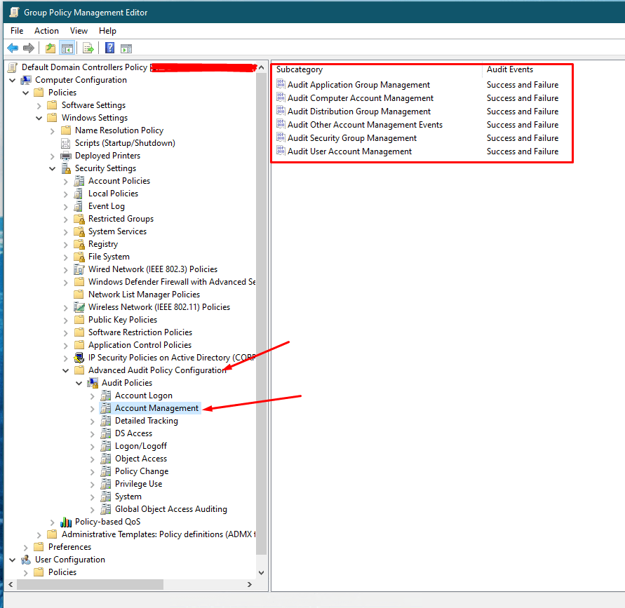I believe Microsoft meant to enable auditing in Default Domain Controllers Policy under Computer Configuration >>> Polices >>> Windows Settings >>> Security Settings >>> Advanced Audit Policy Configuration >>> Account Management. and Enable all Auditing policies.